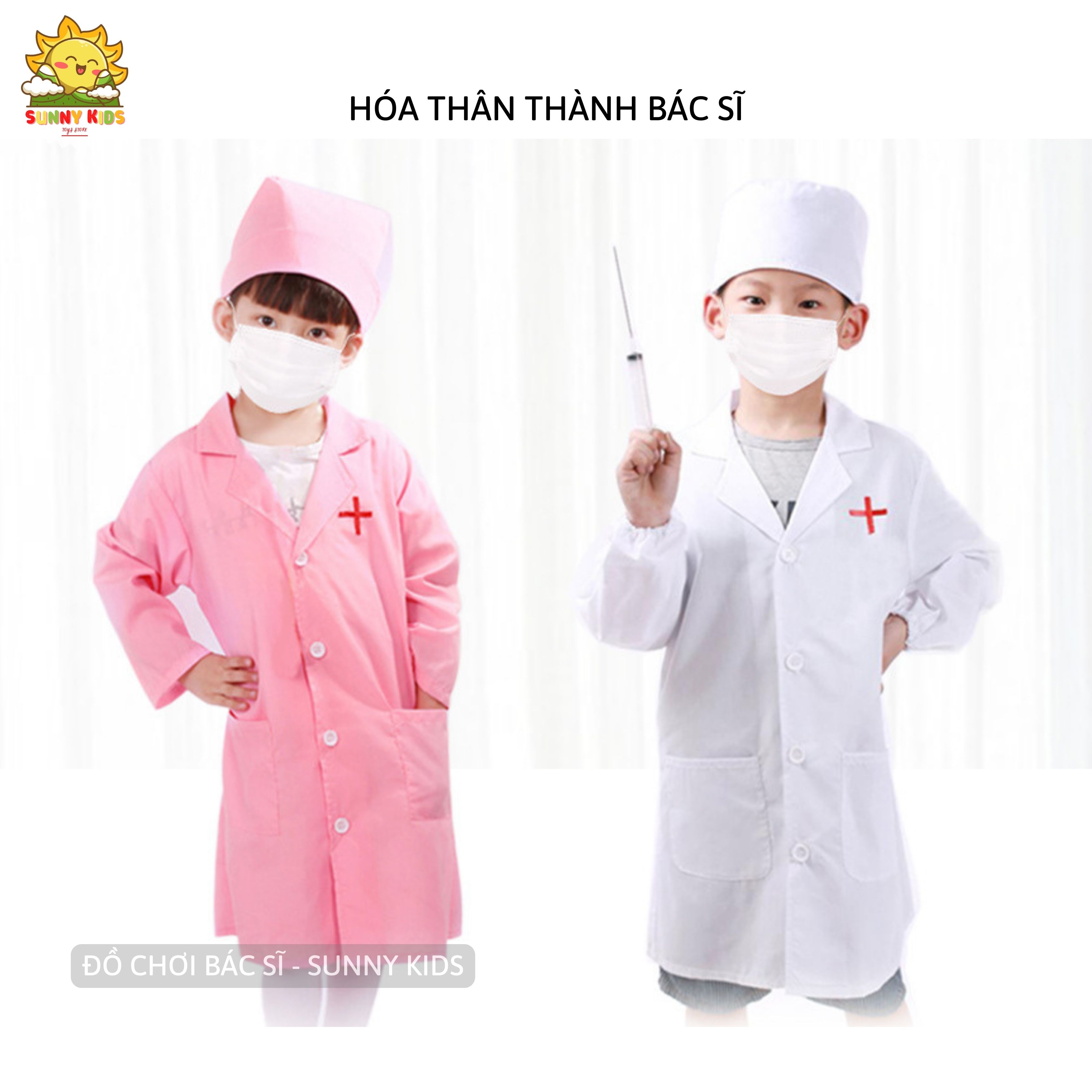 Áo Blouse Bác Sĩ cho Bé, đồ chơi nhập vai tập làm Bác Sĩ, vải mịn, kích thước phù hợp cho Bé trên 3 Tuổi - Sunny Kids
