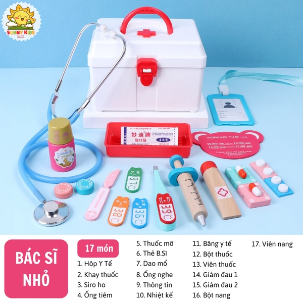 Bộ đồ chơi Bác Sĩ cho bé, Đồ chơi bằng Gỗ chất lượng cao, an toàn, Combo đồ Bác sĩ mang lại niềm vui cho bé - Sunny Kids