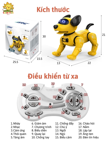 Chú Chó Robot Điều Khiển Từ Xa JJRC R19, đồ chơi Robot thông minh cho Bé, tương tác cảm ứng chạm, Pin sạc - Sunny Kids