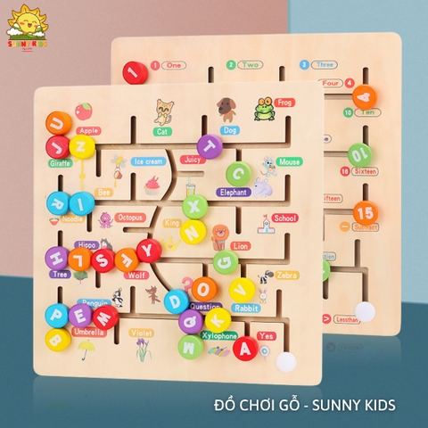 Đồ chơi gỗ Mê Cung cho bé, đồ chơi montessori sắp xếp bi giúp bé nhận diện màu sắc và rèn luyện kỹ năng - Sunny Kids