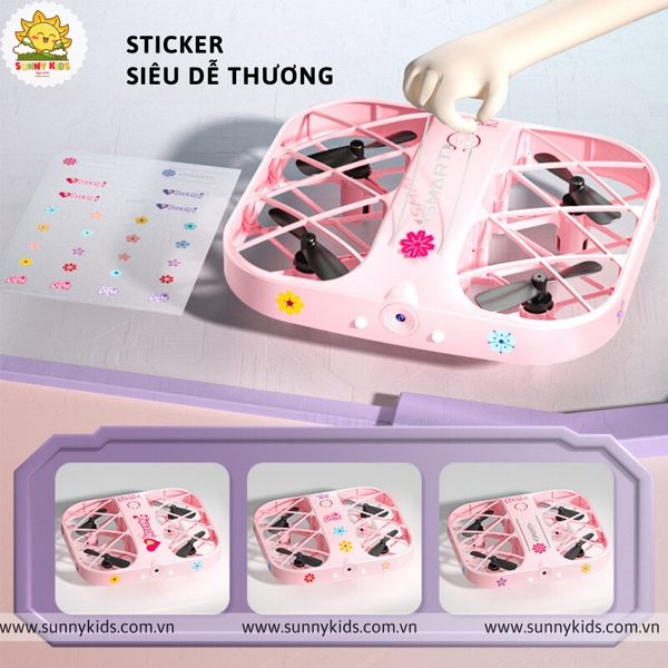 Drone Camera 4K - JJRC H107 | Màu Hồng cho Bé gái | Sticker dễ thương