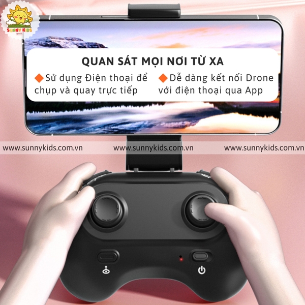 - Máy bay drone trang bị camera 4K, có thể kết nối và điều khiển trực tiếp bằng điện thoại