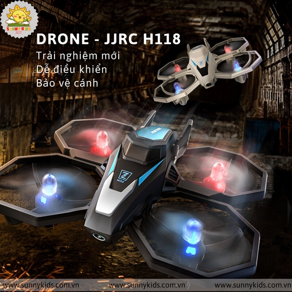 Drone Mini JJRC H118, Máy bay đồ chơi điều khiển từ xa ổn định, an toàn, kích thước nhỏ gọn, đèn Led nhiều màu - Sunny Kids