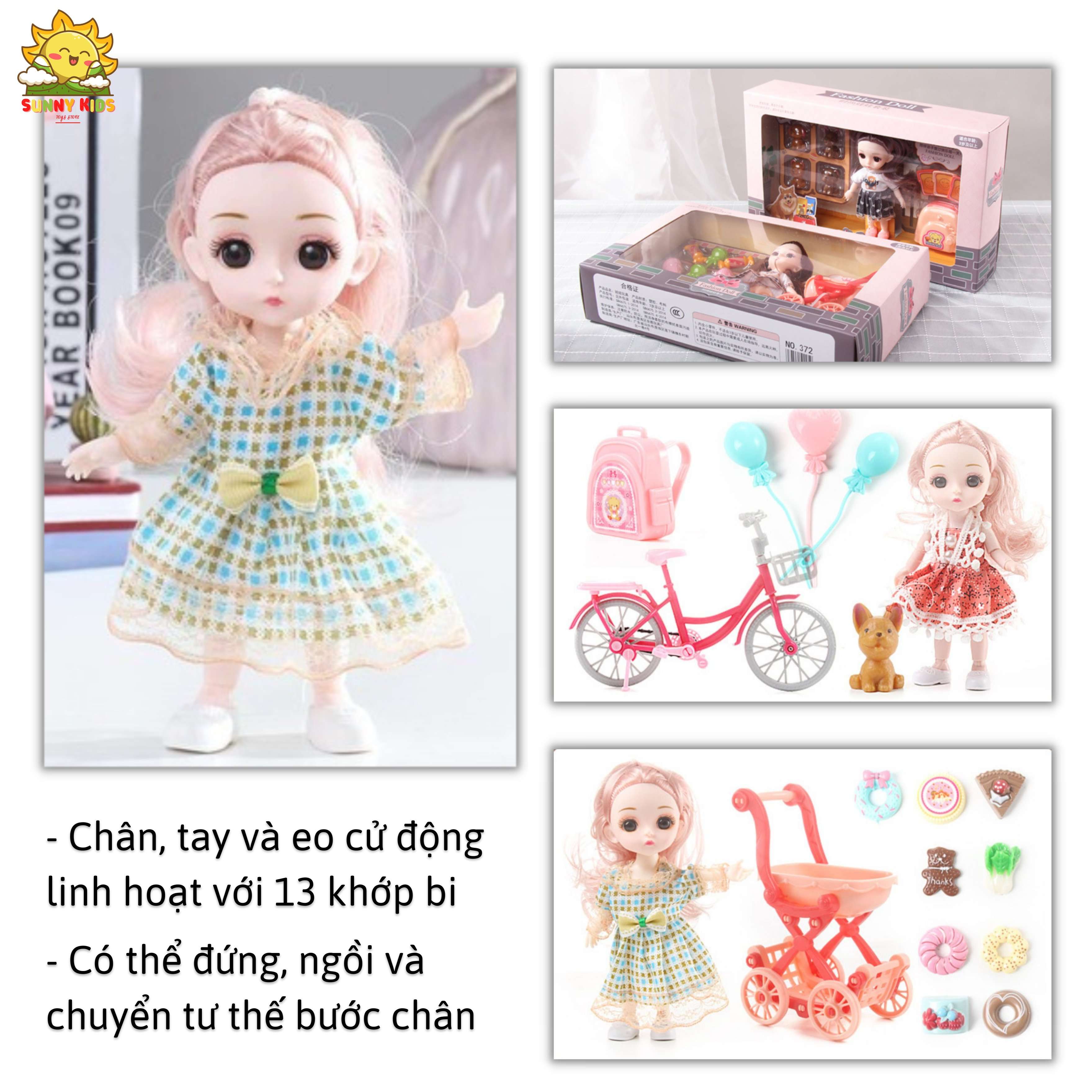 - Kích thước Búp bê 13 khớp linh hoạt: cao 16cm