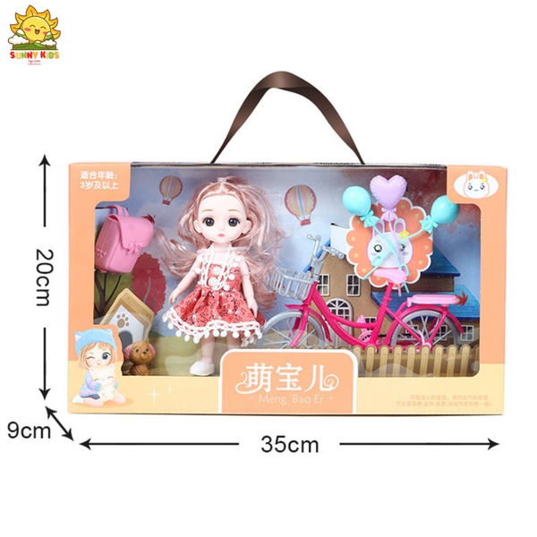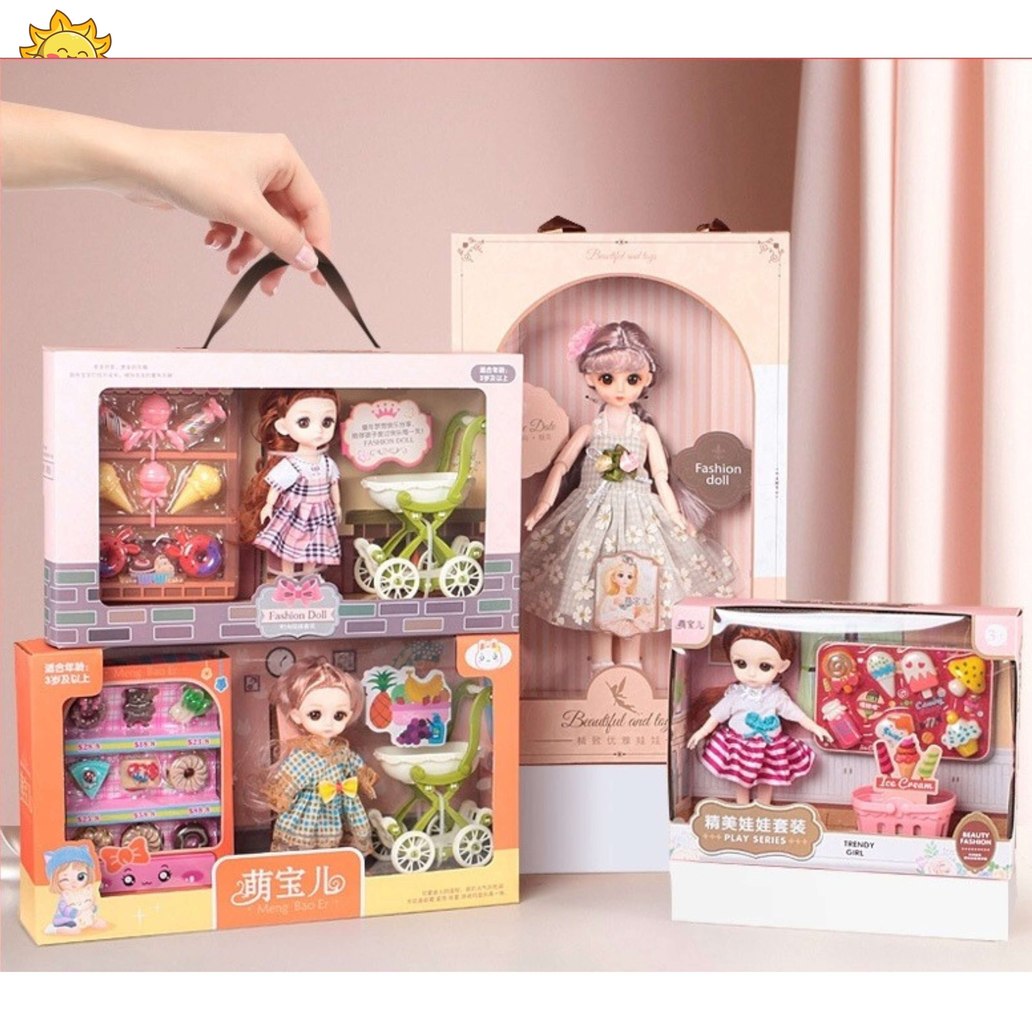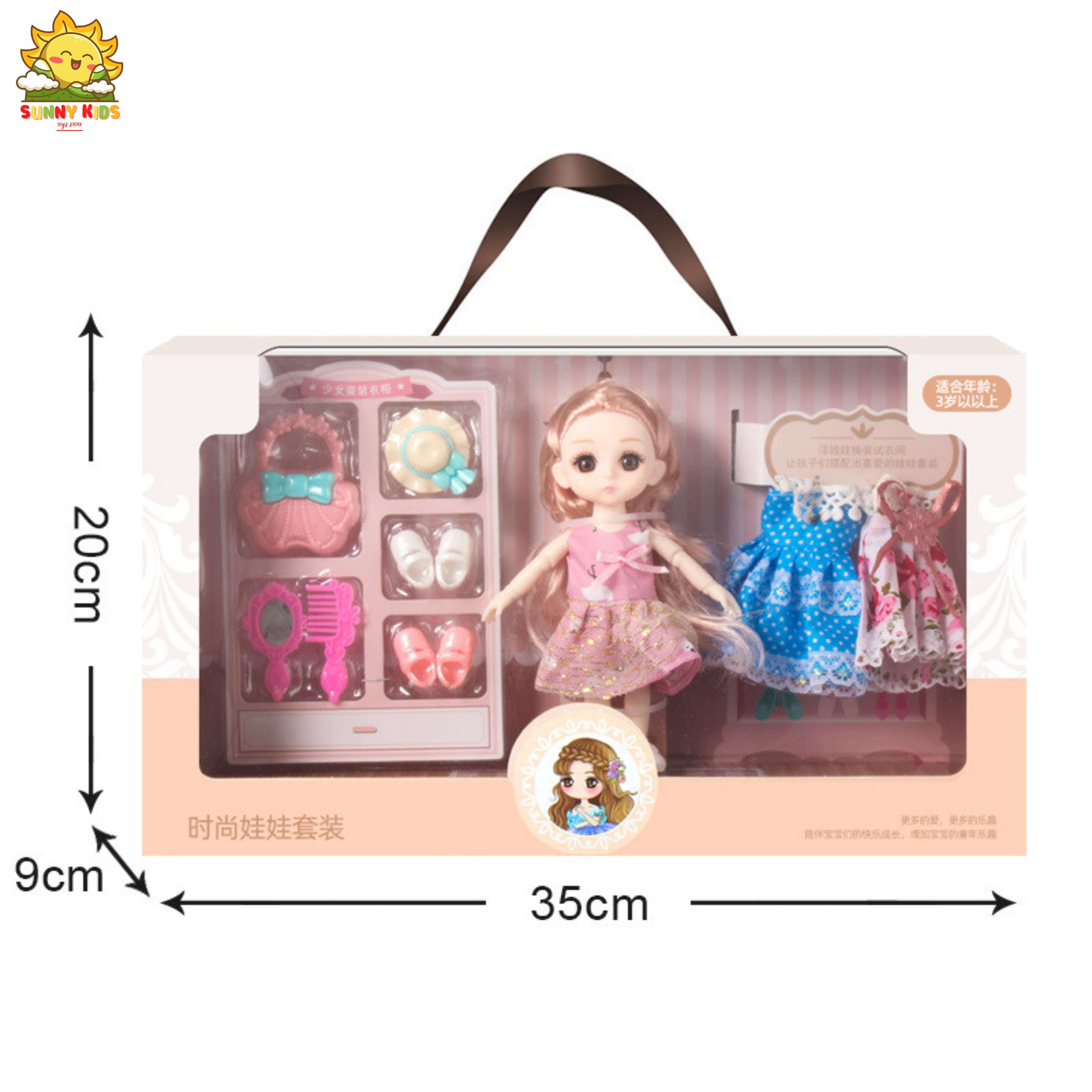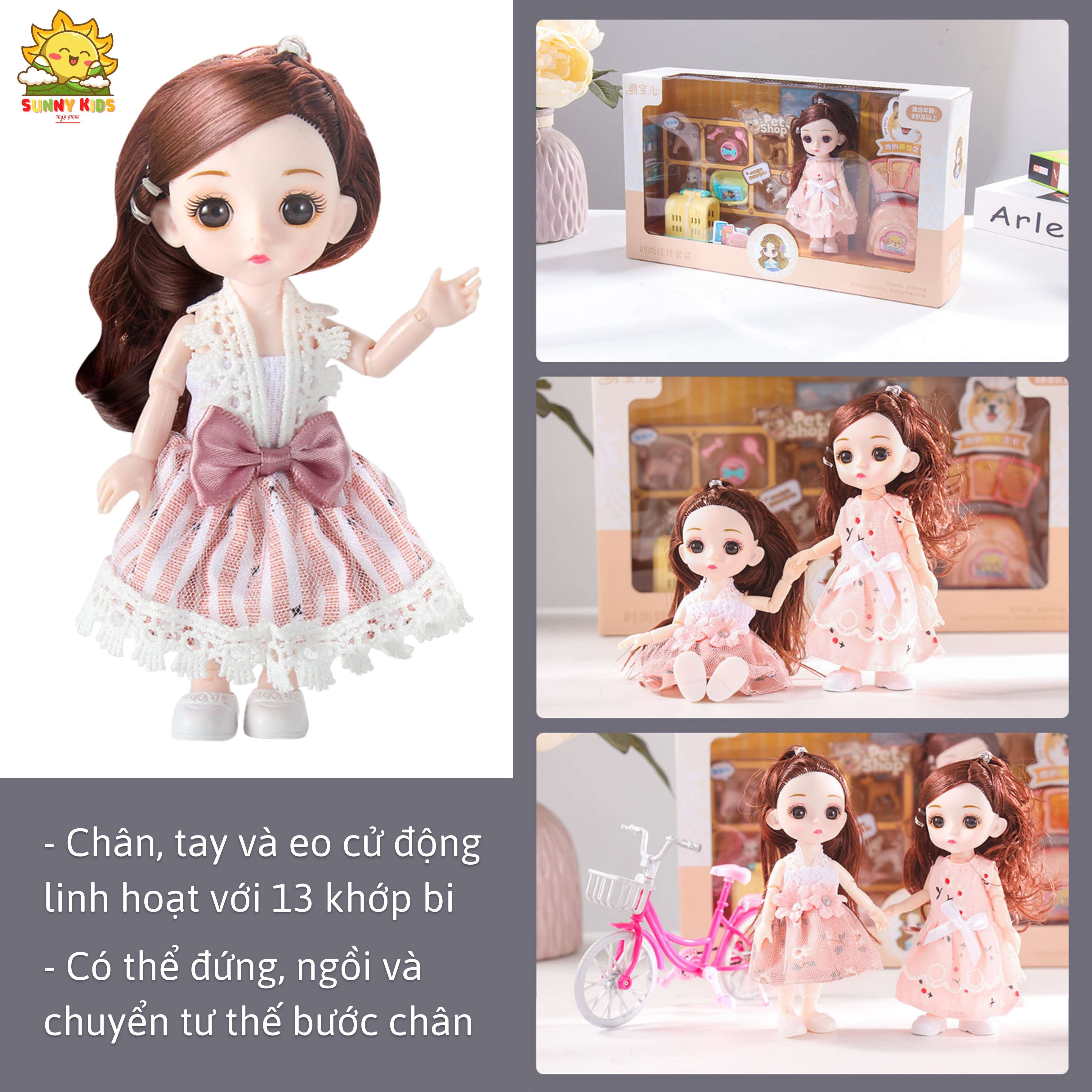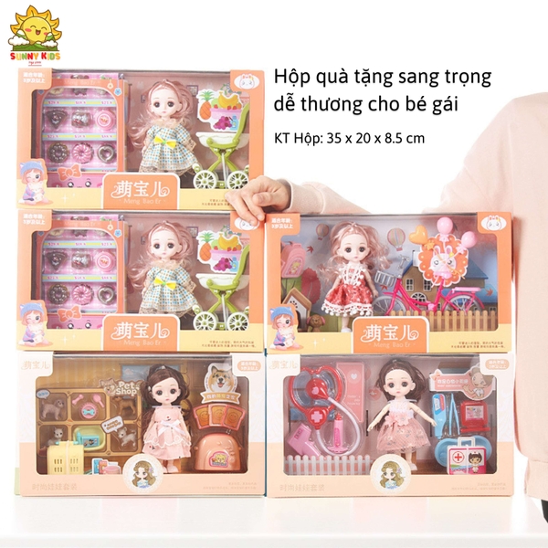 Hộp quà tặng Búp bê cho bé gái, dài 35cm, mắt 3D, 13 khớp linh hoạt, nhiềụ phụ kiện, quà sinh nhật cho bé - Sunny Kids