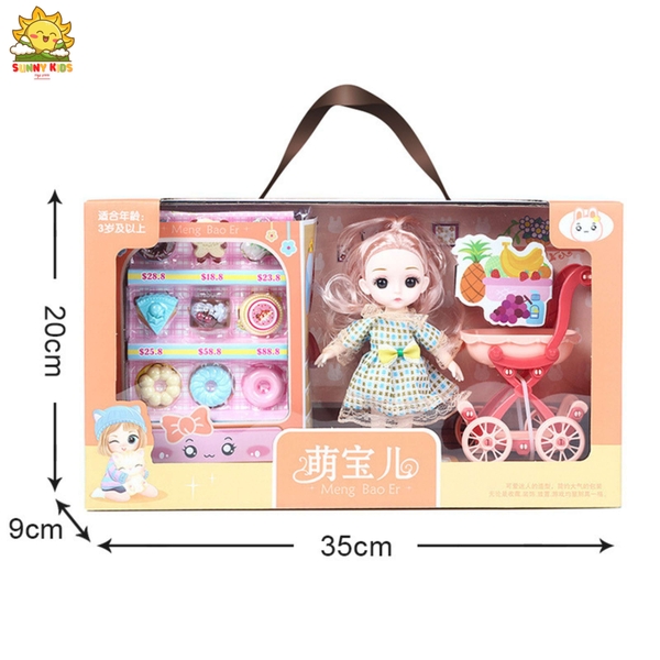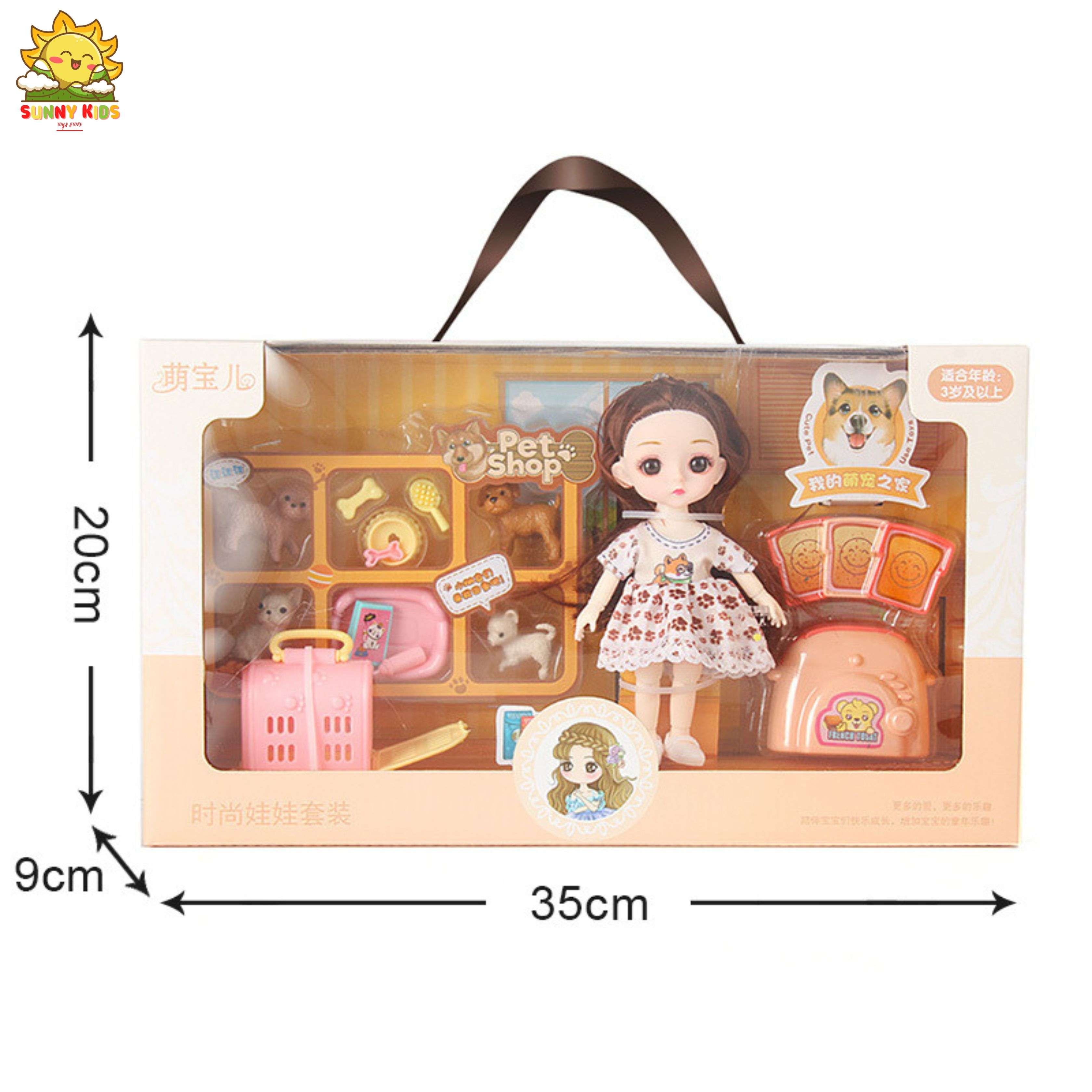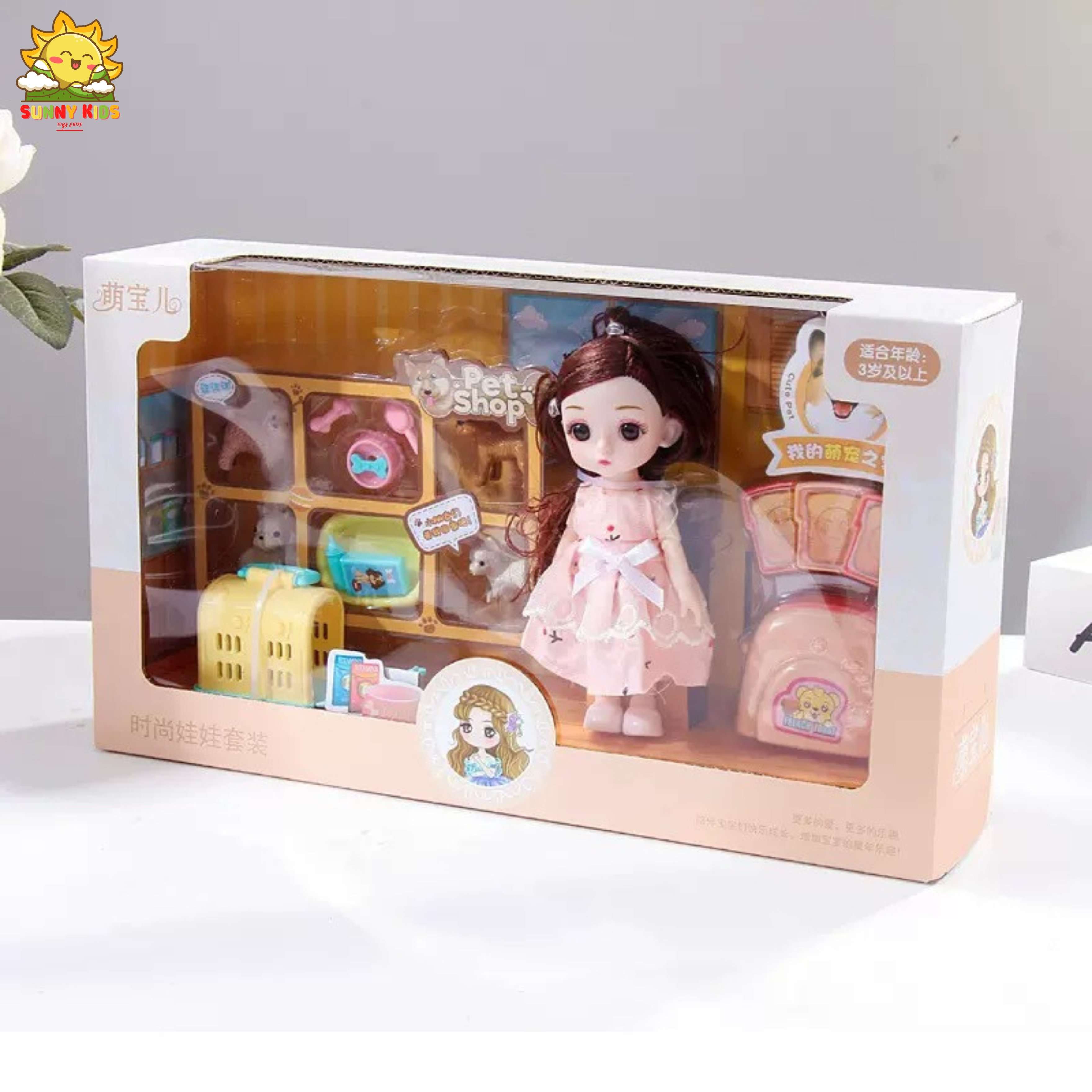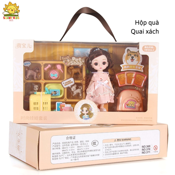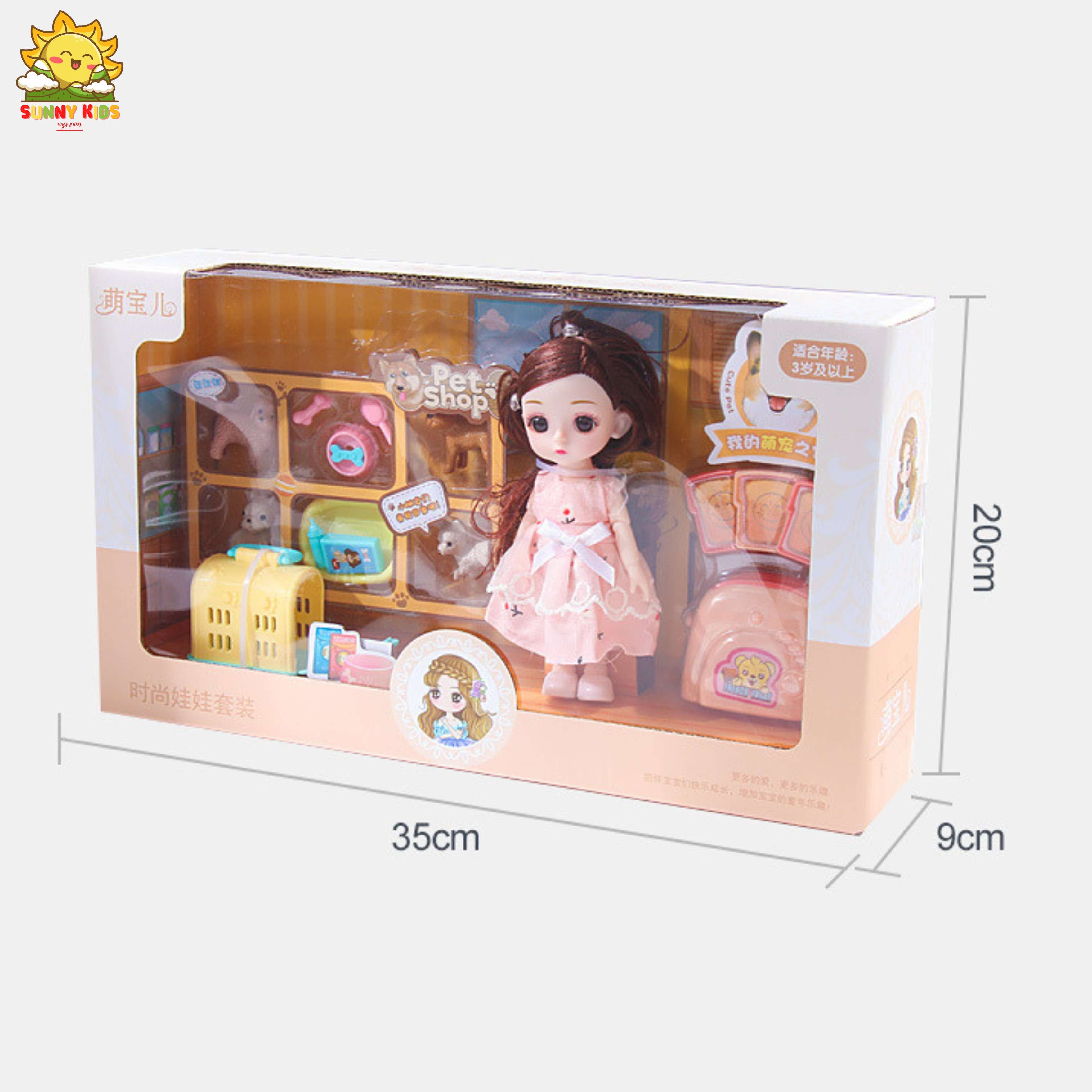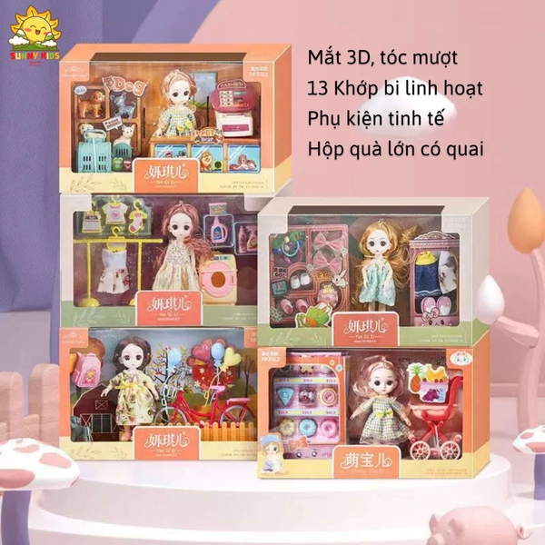 Hộp quà tặng Búp bê cho bé gái, dài 35cm, mắt 3D, 13 khớp linh hoạt, nhiềụ phụ kiện, quà sinh nhật cho bé - Sunny Kids