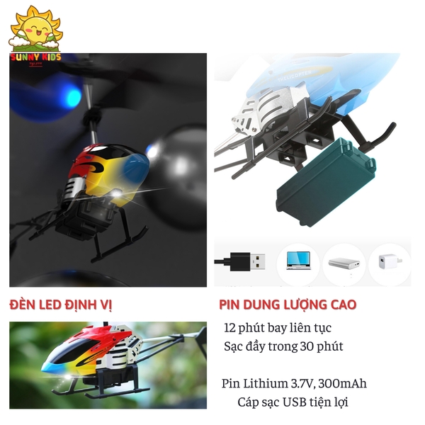 Máy bay trực thăng điều khiển từ xa, 3.5 Kênh, tính năng thông minh, di chuyển linh hoạt, hợp kim siêu bên - Sunny Kids