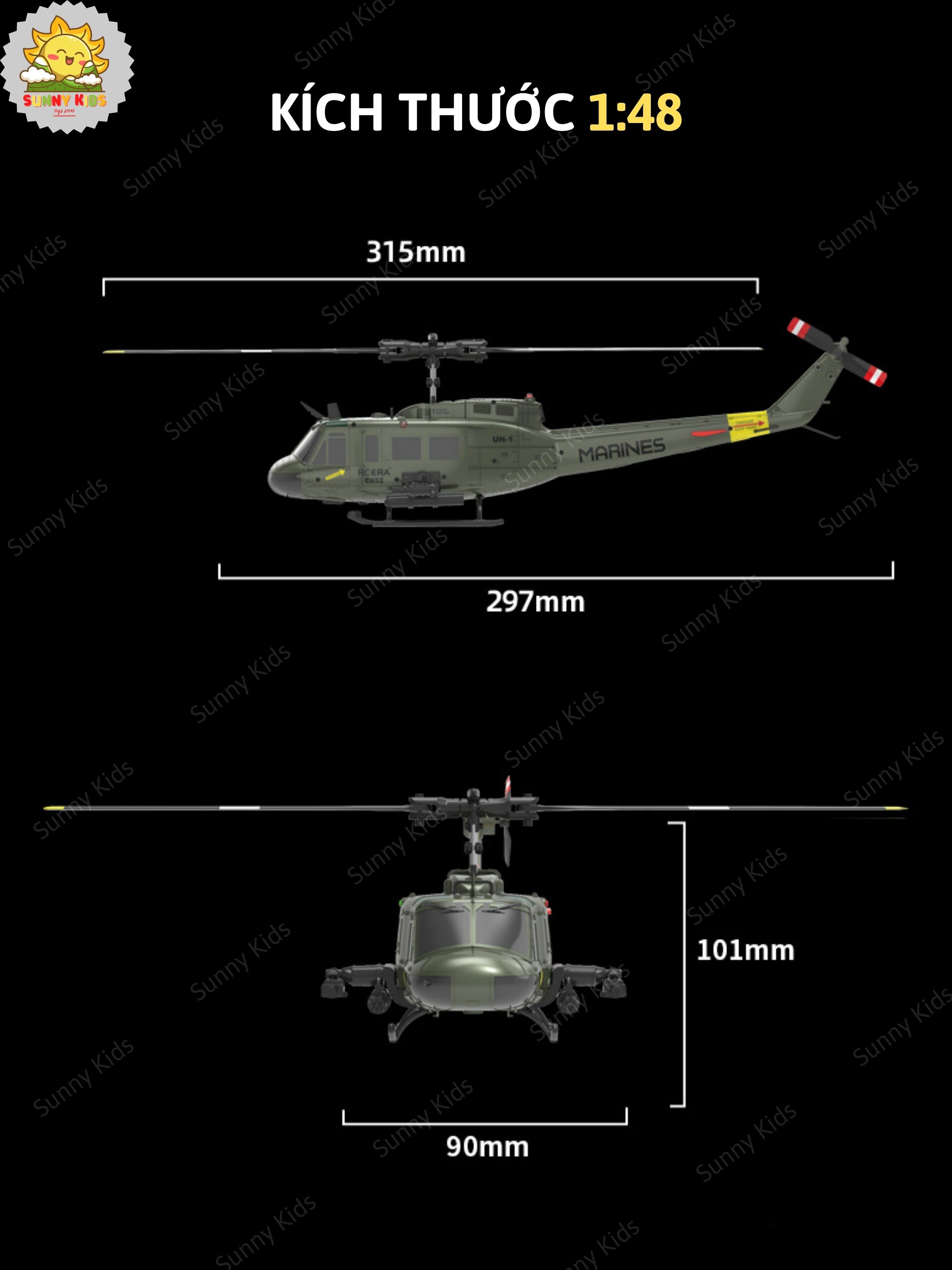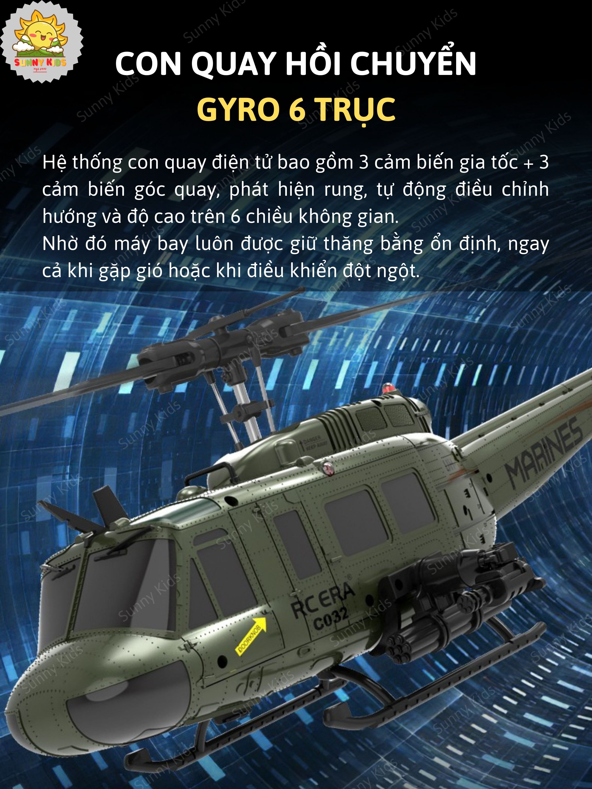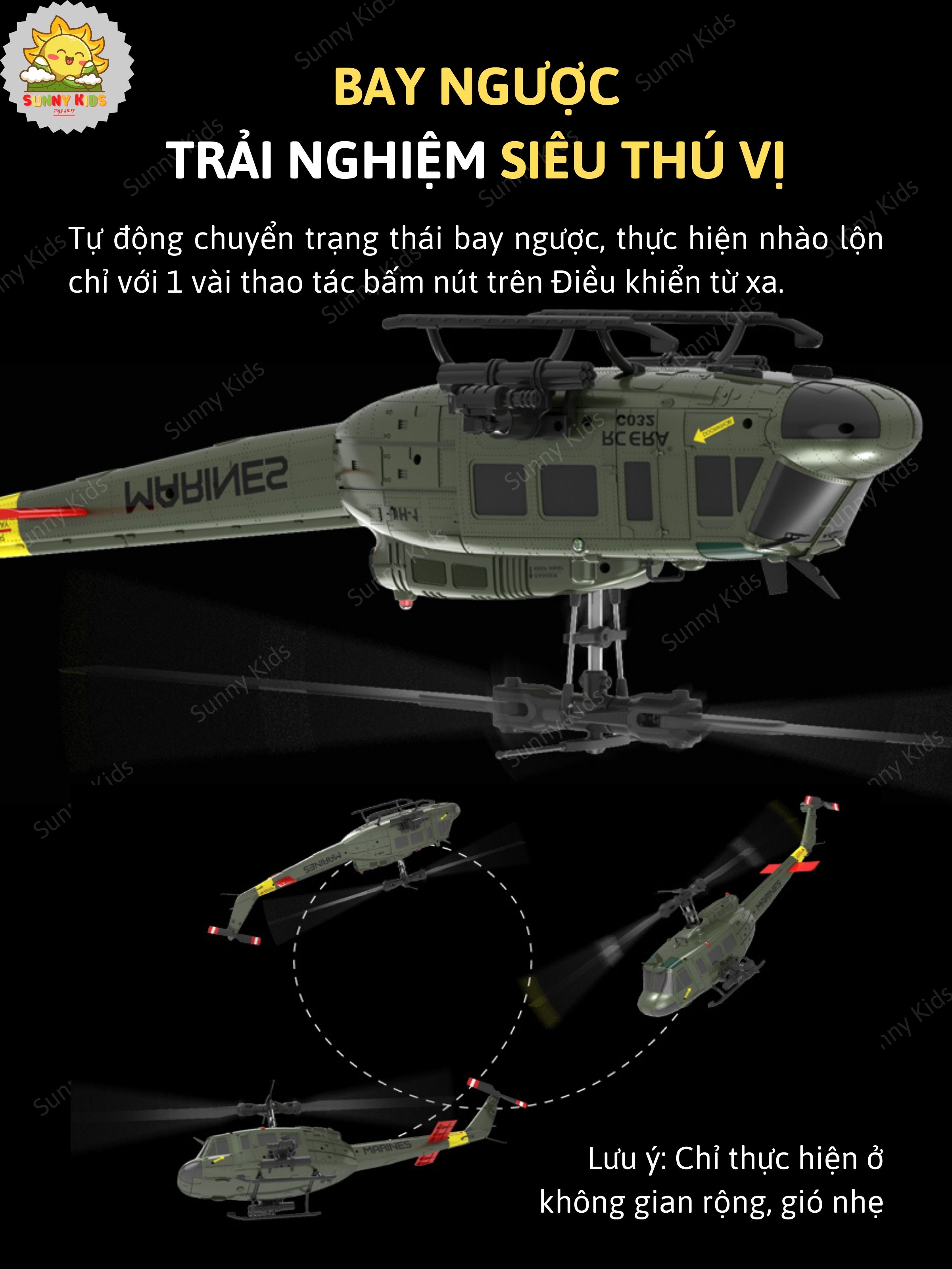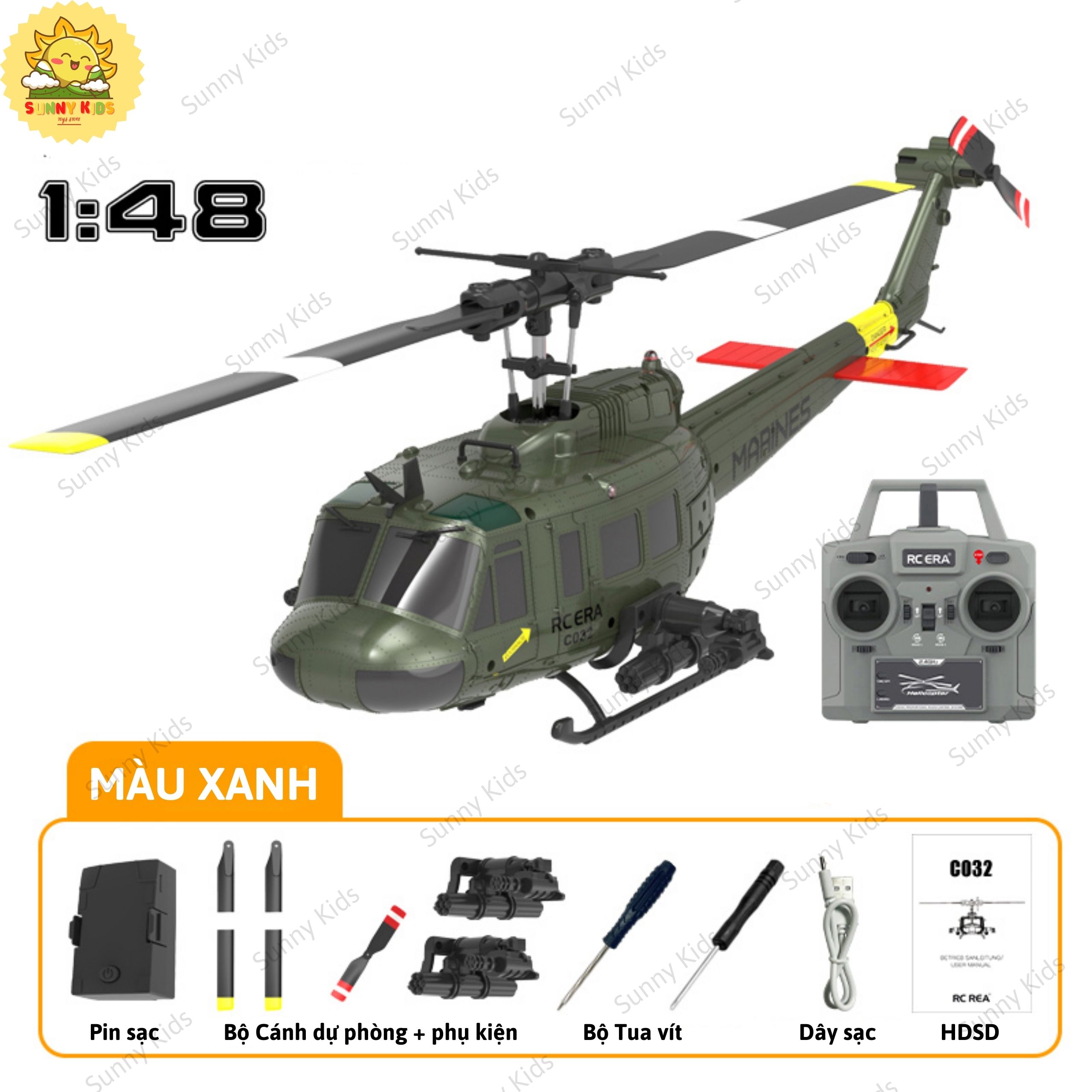 [6 KÊNH] Máy Bay Trực Thăng Điều Khiển ERA C-032 UH-1, Công Nghệ Bay Thông Minh, Chế Độ Bay Ngược Thú Vị - Sunny Kids