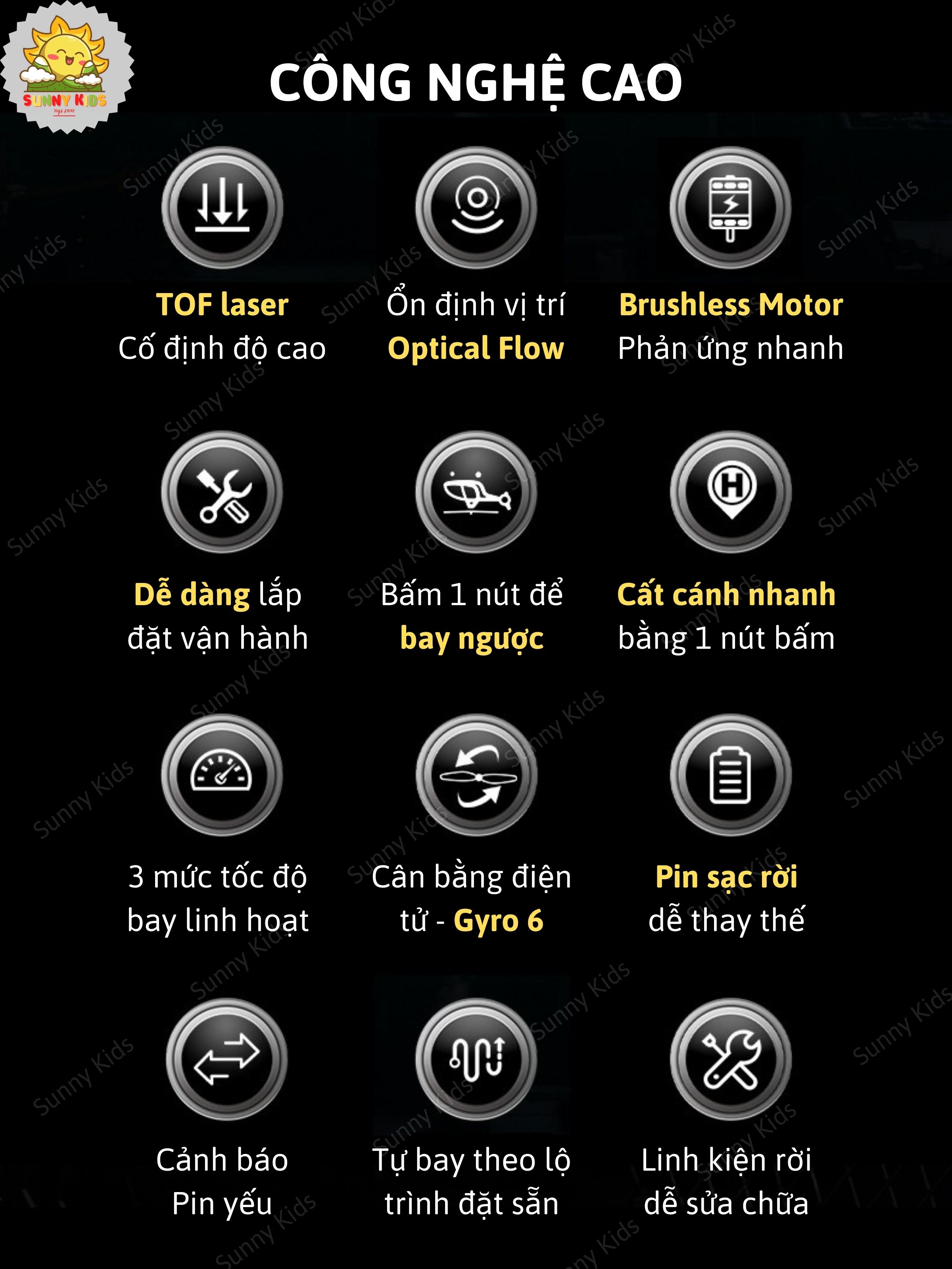 Sunny Kids là cửa hàng đồ chơi trực tuyến chuyên cung cấp sản phẩm đồ chơi chất lượng cao dành cho trẻ em ở các độ tuổi khác nhau. Tại Sunny Kids, chúng tôi mang đến một bộ sưu tập phong phú các món đồ chơi, đặc biệt chú trọng vào các sản phẩm dành cho Bé Trai từ 14 tuổi trở lên. Bao gồm các loại đồ chơi điều khiển từ xa như các loại Xe Điều khiển từ xa (Ô tô, Xe Tăng, Máy Xúc...), các loại Máy bay và Drone Điều khiển từ xa nhiều chức năng, cùng các bộ lắp ghép kỹ thuật giúp trẻ phát triển kỹ năng tư duy và sáng tạo. Ngoài những sản phẩm chủ lực trên, chúng tôi cũng cung cấp đa dạng các sản phẩm đồ chơi cho Bé gái, Đồ chơi lắp ghép, xếp hình...và nhiều loại đồ chơi khác cho các Bé ở mọi lứa tuổi khác nhau.