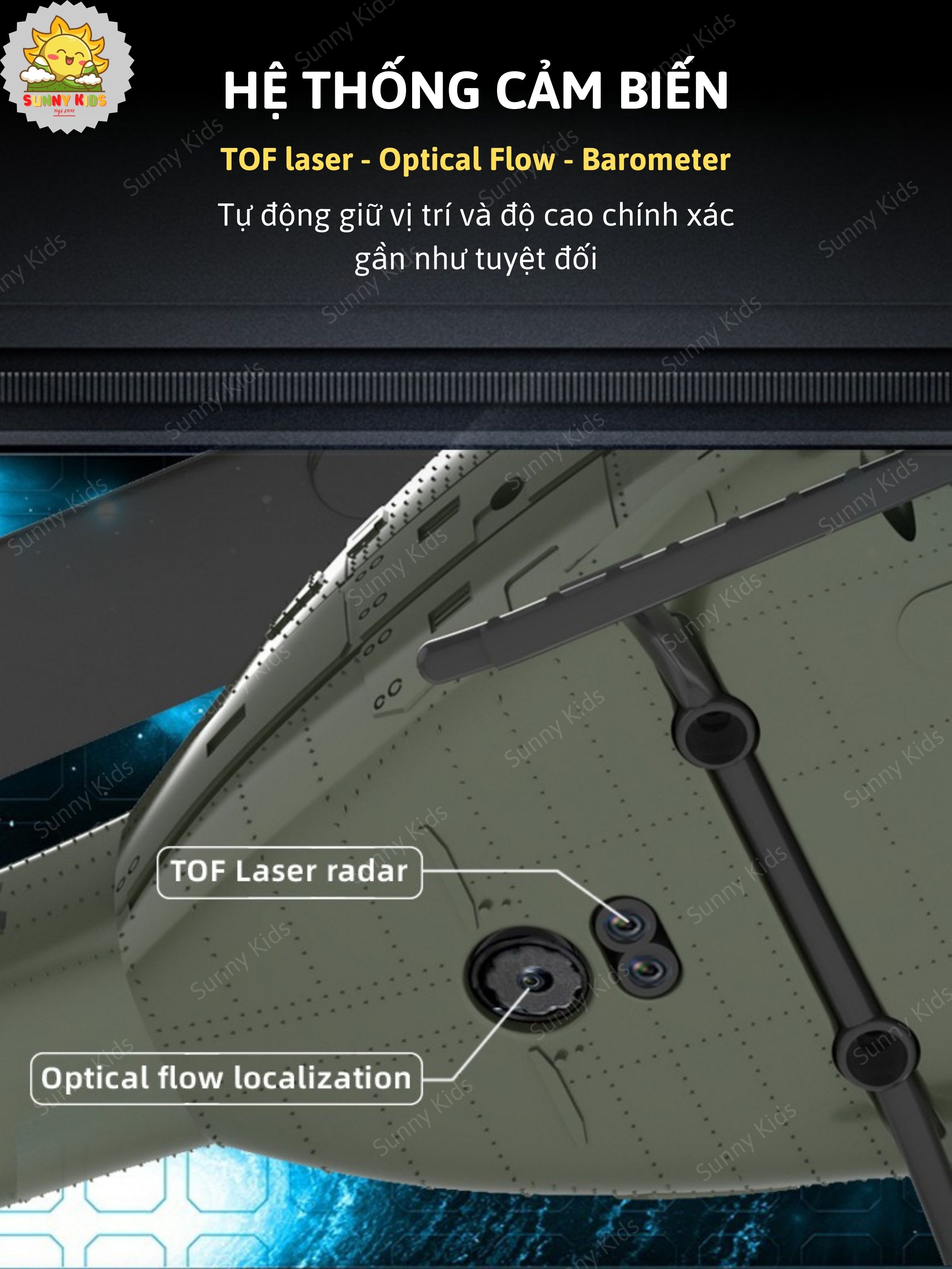 🌟 Giữ vị trí & giữ độ cao tự động nhờ hệ thống 3 cảm biến hiện đại: