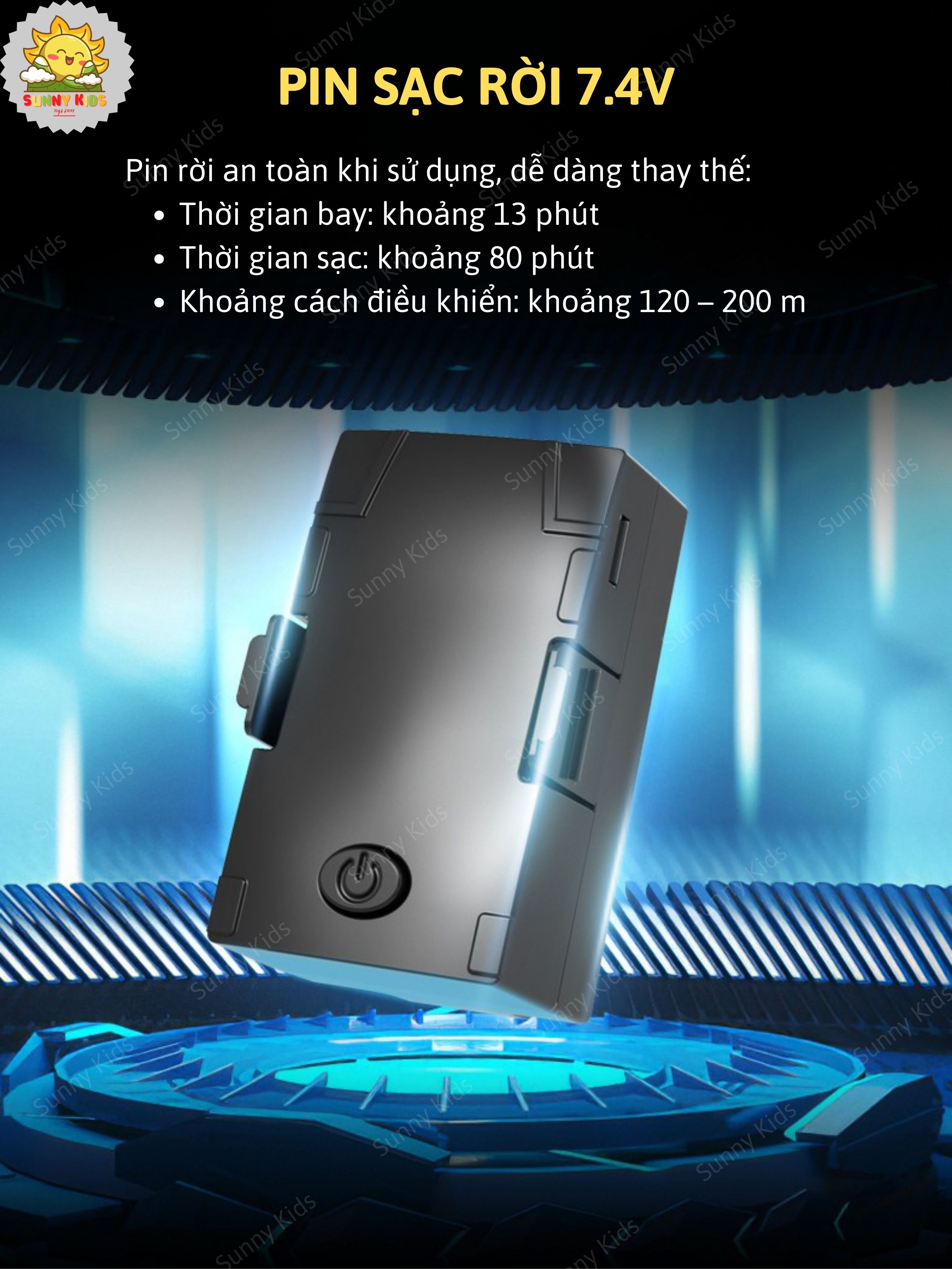 - Pin máy bay: 7,4 V – 350 mAh dạng module an toàn, dễ tháo lắp