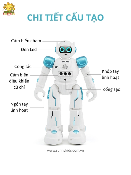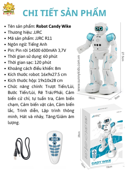 Robot thông minh Điều Khiển Từ Xa CADY Wike JJRC R11, Có Cảm biến chuyển động và chống va chạm, Pin sạc, Âm thanh vui nhộn - Sunny Kids