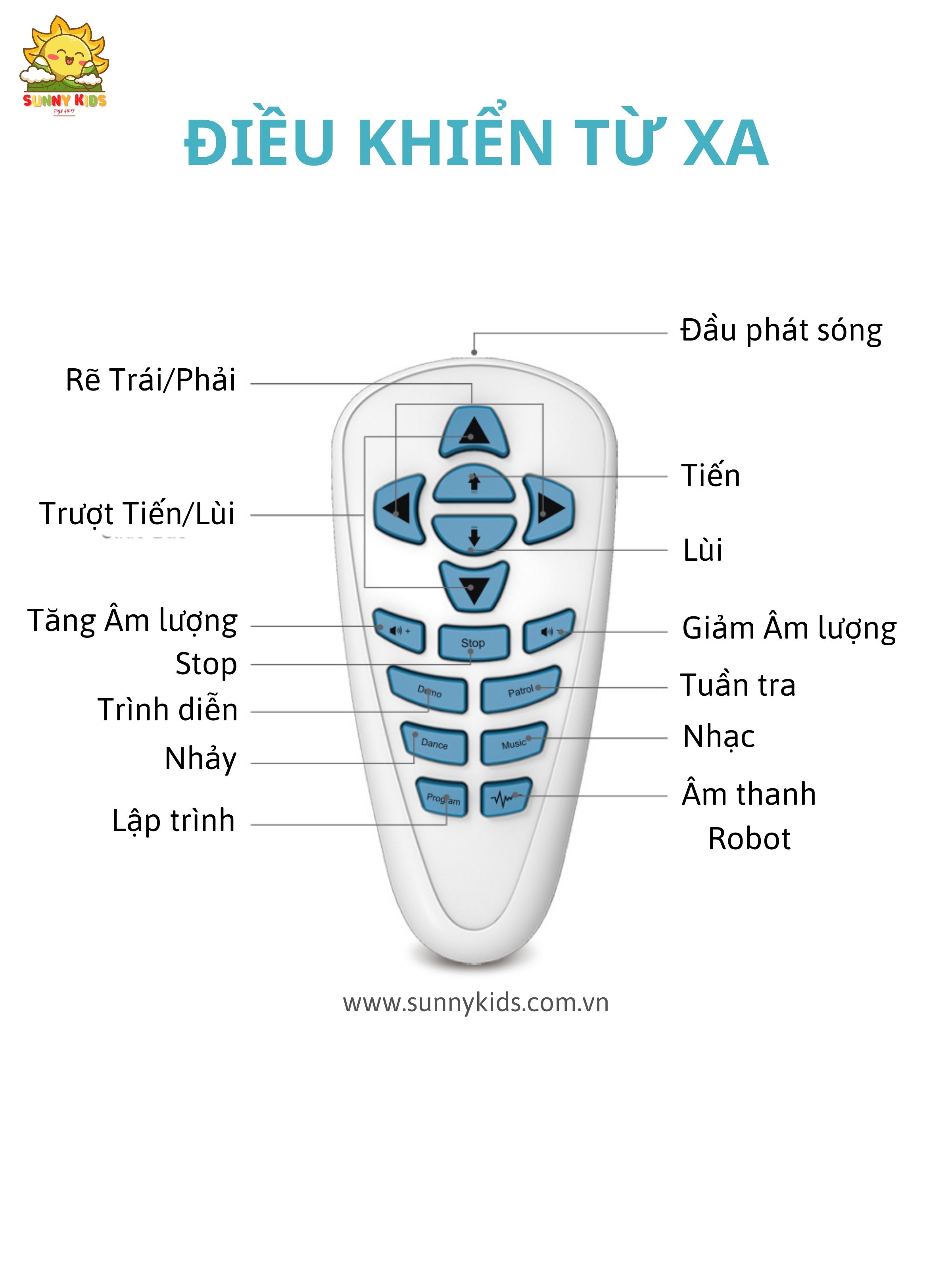 - Chức năng chính: Cảm biến cử chỉ, tự tuần tra, Cảm biến chạm, Cảm biến vật cản, Cảm biến lắc, Trượt Tiến/Lùi, Bước Tiến/Lùi, Rẽ Trái/Phải, Trình diễn, Lập trình thông minh, Hát và nhảy, Tăng/Giảm âm lượng