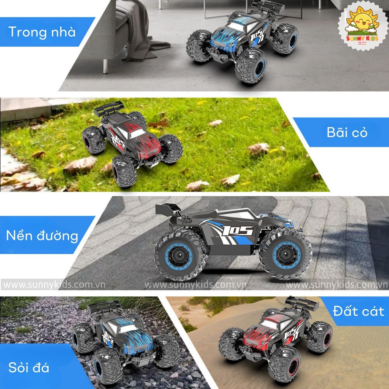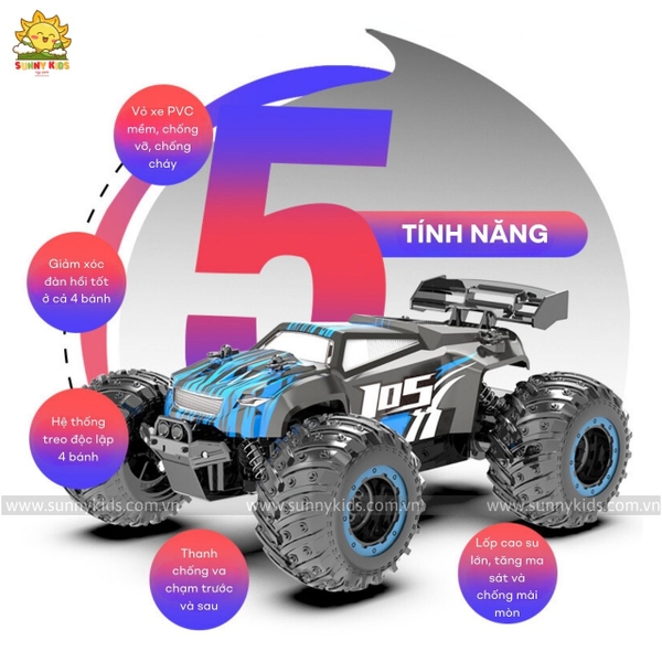 - Thân xe nhẹ, vỏ xe PVC mềm, giúp Xe JJRC Q105 hoạt động linh hoạt. Chống va đập và chống rơi. Lò xo tại 4 bánh giúp hấp thụ sốc trên đường gồ ghề tốt hơn.