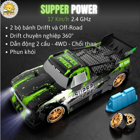 - Điều khiển từ xa 2.4Ghz, không bị trùng sóng khi chơi cùng lúc nhiều xe.